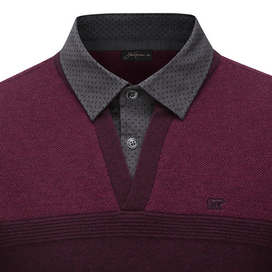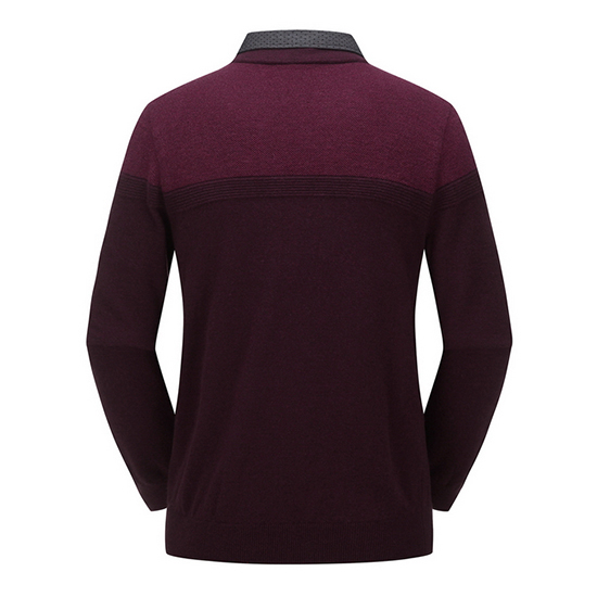 - 블록 디자인의 도트 패턴 셔츠를 레이어드한 남성 니트.