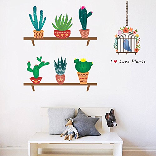 ZooartZooarts Cartoon Cactus Bird Cage wall stickers Decals Decals Kids Nursery Decor Mural