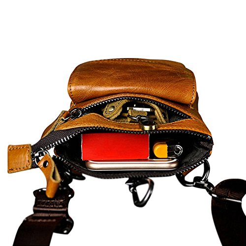 -. Feature : Material:High quality Genuine Leather Bag size:4.7" x 1.6" x 6.7" Weight:0.44lb / Spacious Interior: This bag has mine pocket and a zipper pocket.You can put wallet,cell phone, key and so on. / Simple and generous style, suitable for business activity, traveling or daily use.This package can also be used as a gift. / 3 Ways: You can wear the this messenger bag in 3different styles.As waist belt bag,wear it as a shoulder bag, or wear it as a cross body bag and display your hippie style. / Made of premium quality synthetic leather and well constructed with nice stitching, so it is long lasting, wear-resistant and easy to clean.Perfect for day trips, vacation, travel, day hikes, school, camping and shopping.