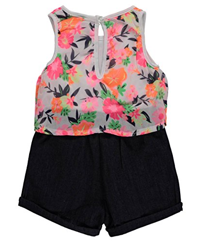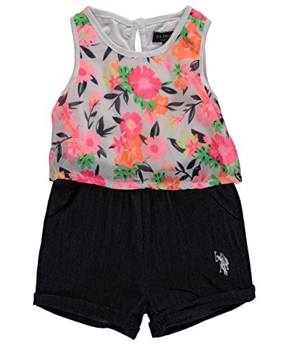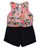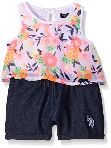 Flounce patterned tank top with denim short bottom romper