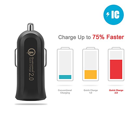 Qualcomm Quick ChargeTM 2.0 Technology, charges compatible devices up to 75% faster than a standard charger, also supports Apple iPhone and iPad fast charging.