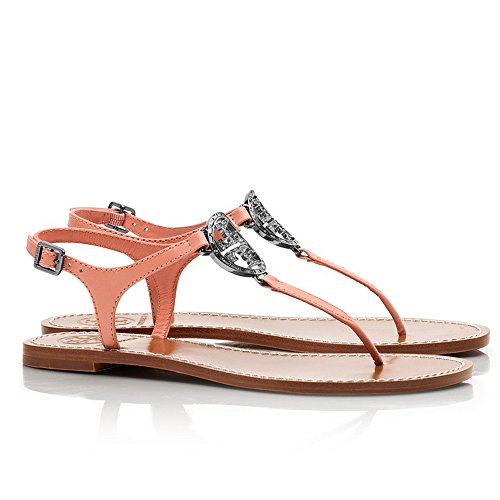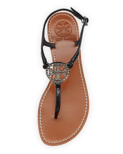 A classic T-strap silhouette gets a dose of sparkle on the Violet Metallic Thong Sandal. This minimalist style is made of mirrored leather with a pavé crystal-encrusted signature logo. Comfortable and versatile, it's great for adding a little low-key luster to summertime looks. Looks great with: Shorts and beach cover-ups Skirts and dresses, from mini to maxi Cropped, skinny and boyfriend jeans Anything you'd wear with a nude shoe - it's equally versatileFeature