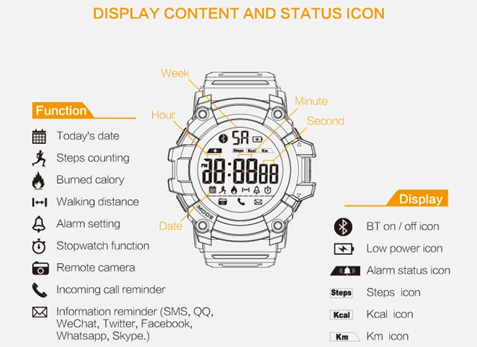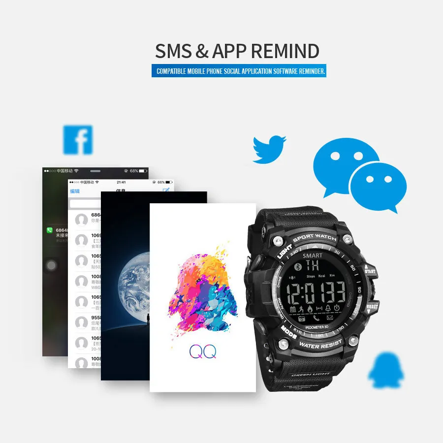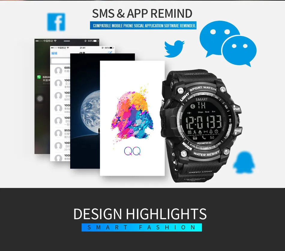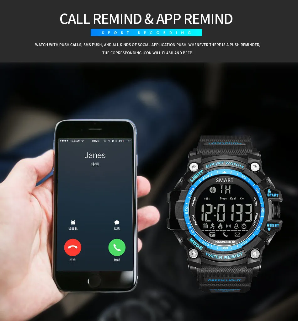 Feature:Message Reminder,Call Reminder,Back Light,Shock Resistant,LED display,Luminous,Auto Date,Chronograph,Complete Calendar,Perpetual Calendar,Water Resistant,Alarm,Bluetooth,Week Display