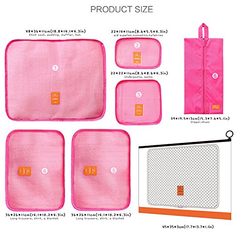 -. Feature : Keeps clothes and small items neat and safe in one bag. It's very convenient and much easier to pack anything from clothes to souvenirs . This products is Easy to washable, smell reduction, reasonably arrange lage space to make more convenience. / TWO-WAYS ZIPPER closure (Whether used to left or right, two-way zipper of humanization design, can provide a more convenient for you.) / Made of polyester and soft nylon mesh with finished interior seams to increase durability. Mesh top panel for easy identification of contents and ventilation. one side is partial water resistance and another side is well ventilated