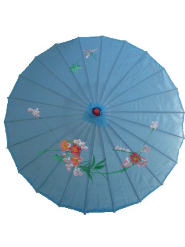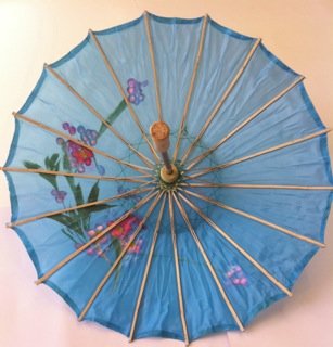 -. Title : Chinese Japanese Blue Fabric Umbrella Parasol 32"