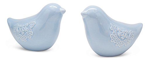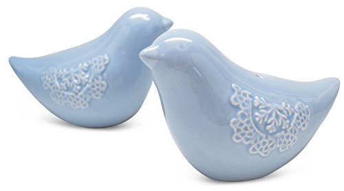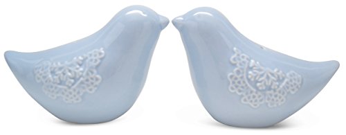 Ceramic Light Blue Snowflake Birds Salt and Pepper Shaker Set of 2