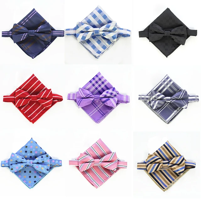 | [해외]RBOCOTT 나비 넥타이 손수건 세트 남성 패션 스트라이프 & 체크 나비 넥타이 자카드 포켓 광장 웨딩 파티 액세서리 |