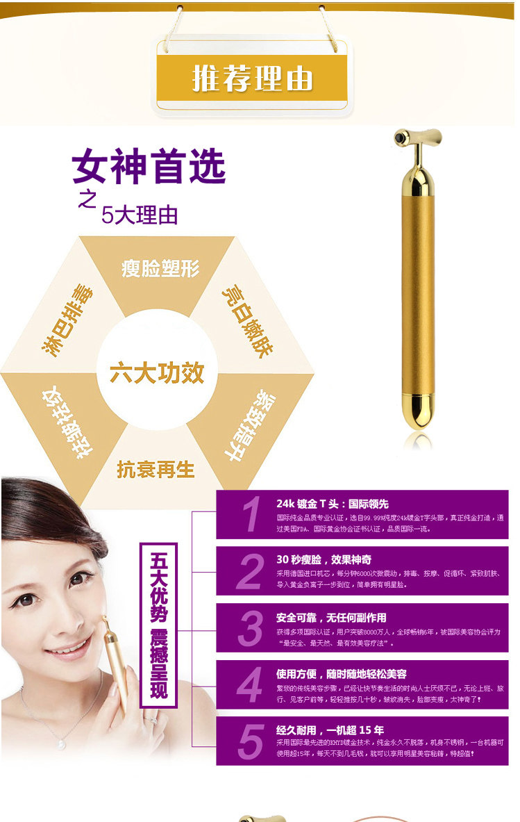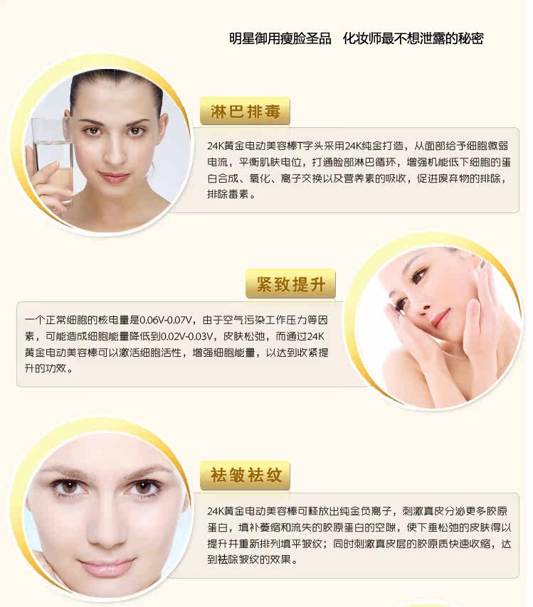 2: After cleaning the face, can tie Essence Beauty Bar T-electric site in the beginning of your facial massage, T-type massage every part 3 seconds after starting from the inside out to promote.
