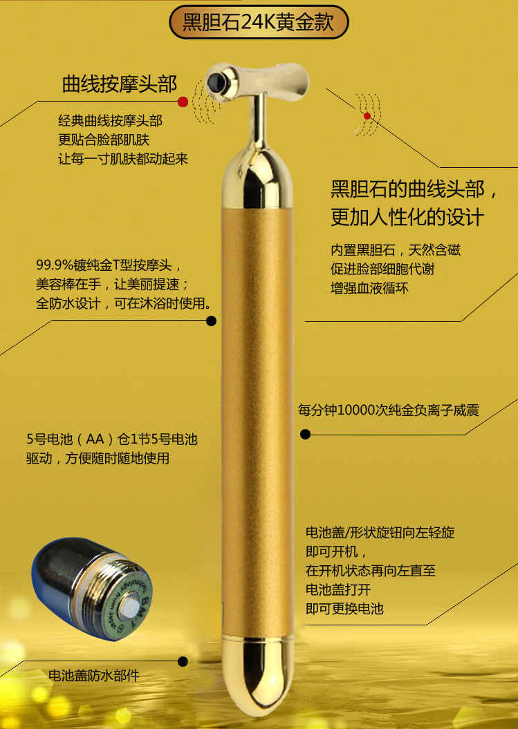 1: Take out beauty bar, electric rear beauty bar handle counter-clockwise rotation switch is turned into a 5th battery then screw on it.