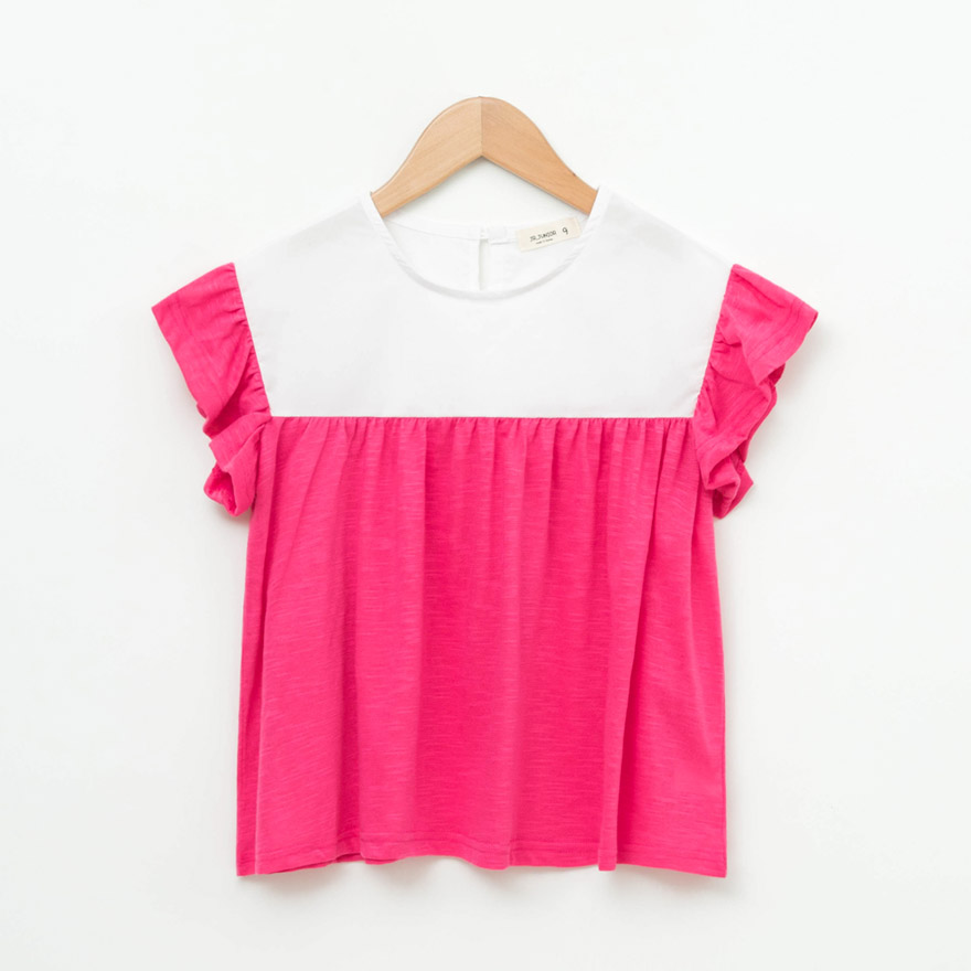 소매와 가슴에 잡힌 셔링 포인트로