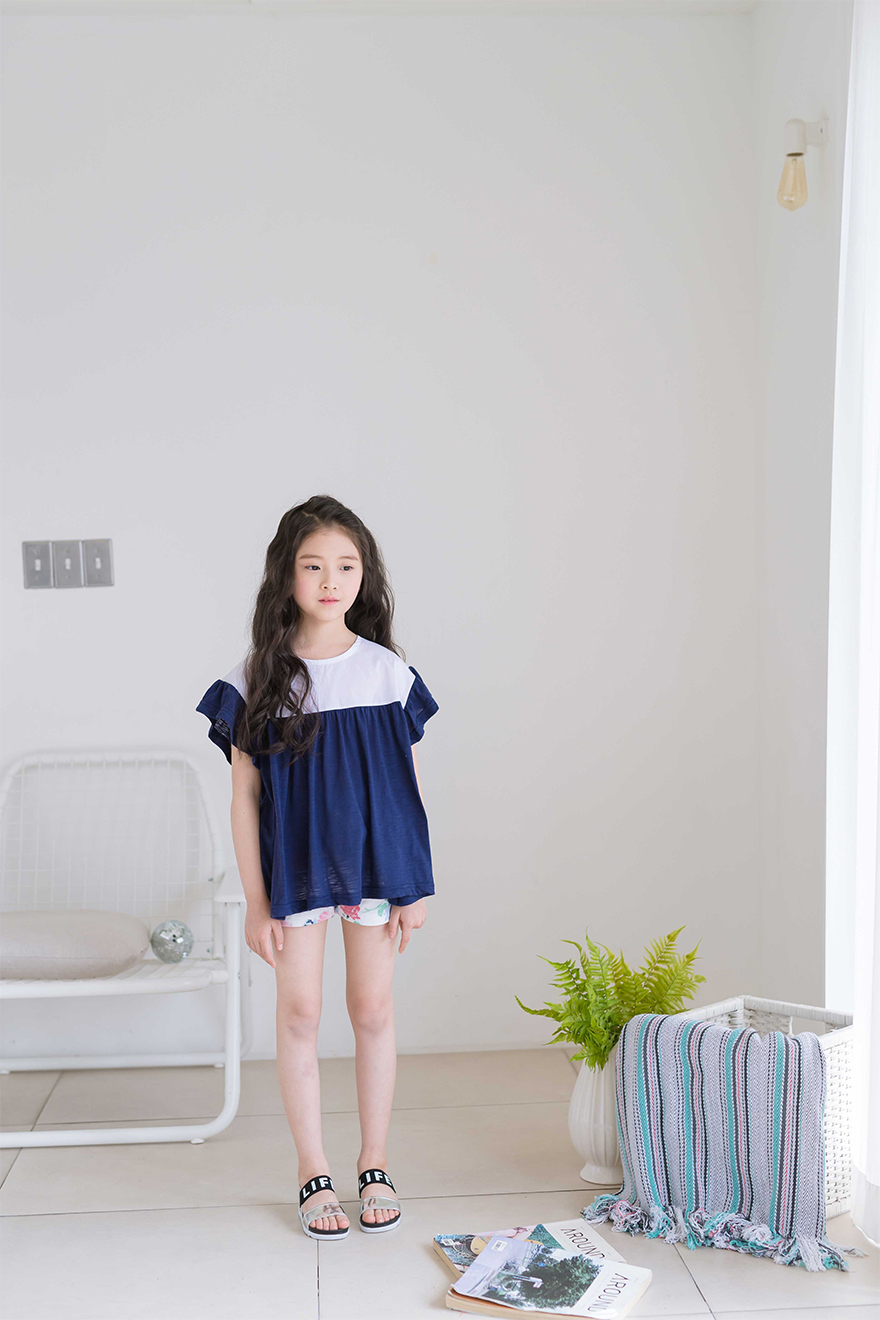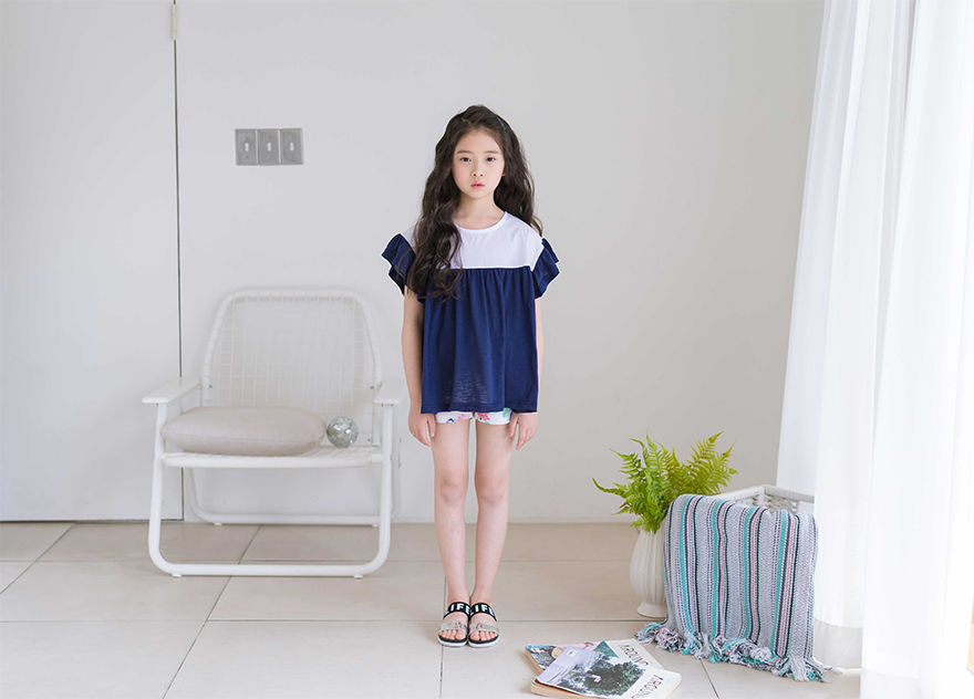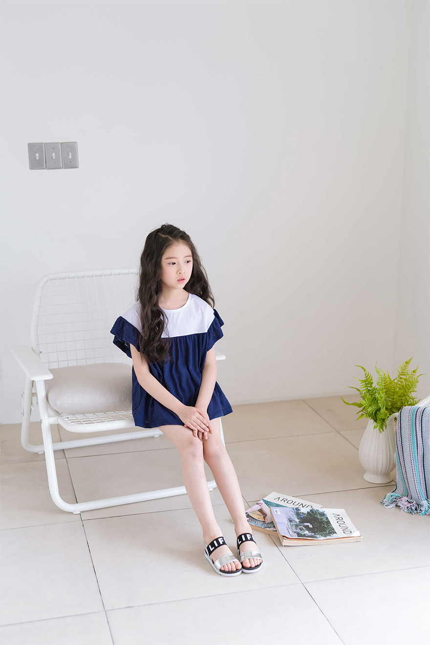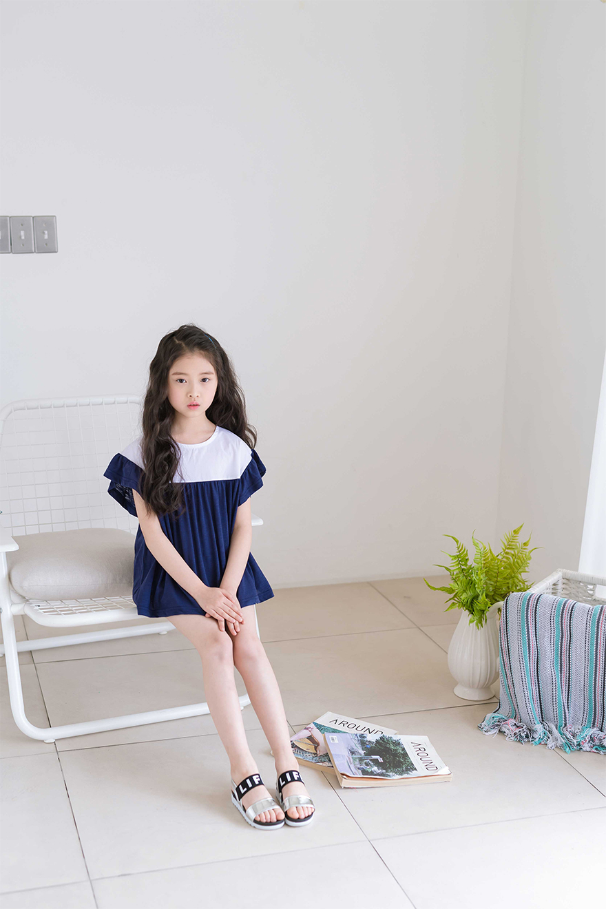 다슬이는 126cm에 22kg으로 다소 마른 체격이며, 딱 맞게 네이비 9호를 착용하였습니다.