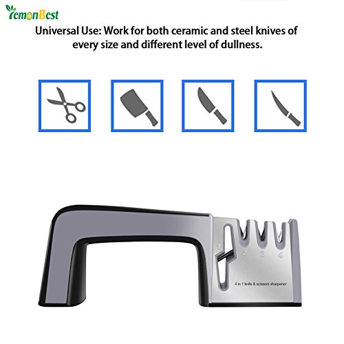 Knife Sharpener, Scissor Sharpener System, Hand Held Stainless Steel Blade Knife Sharpener