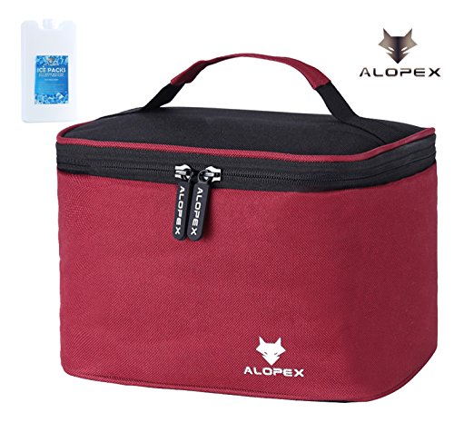 Lunch Bag for Women,Men,Kids ALOPEX Lunch Box Insulated Lunch Bag With Ice Pack,Black & Red