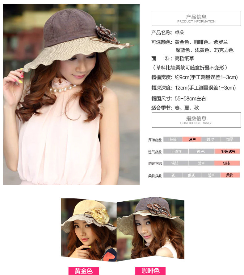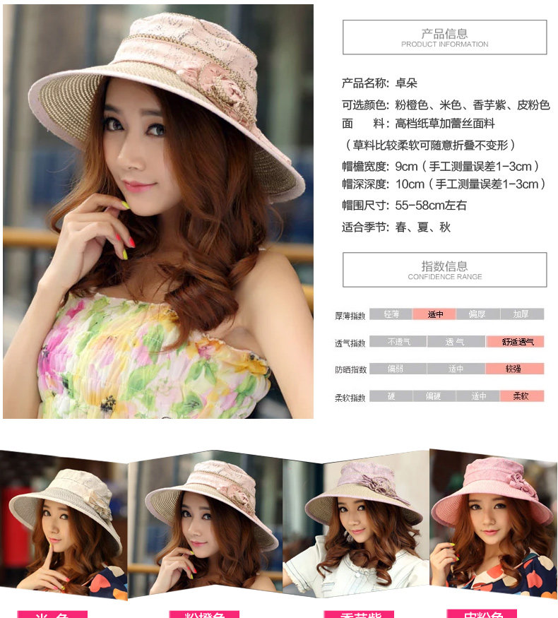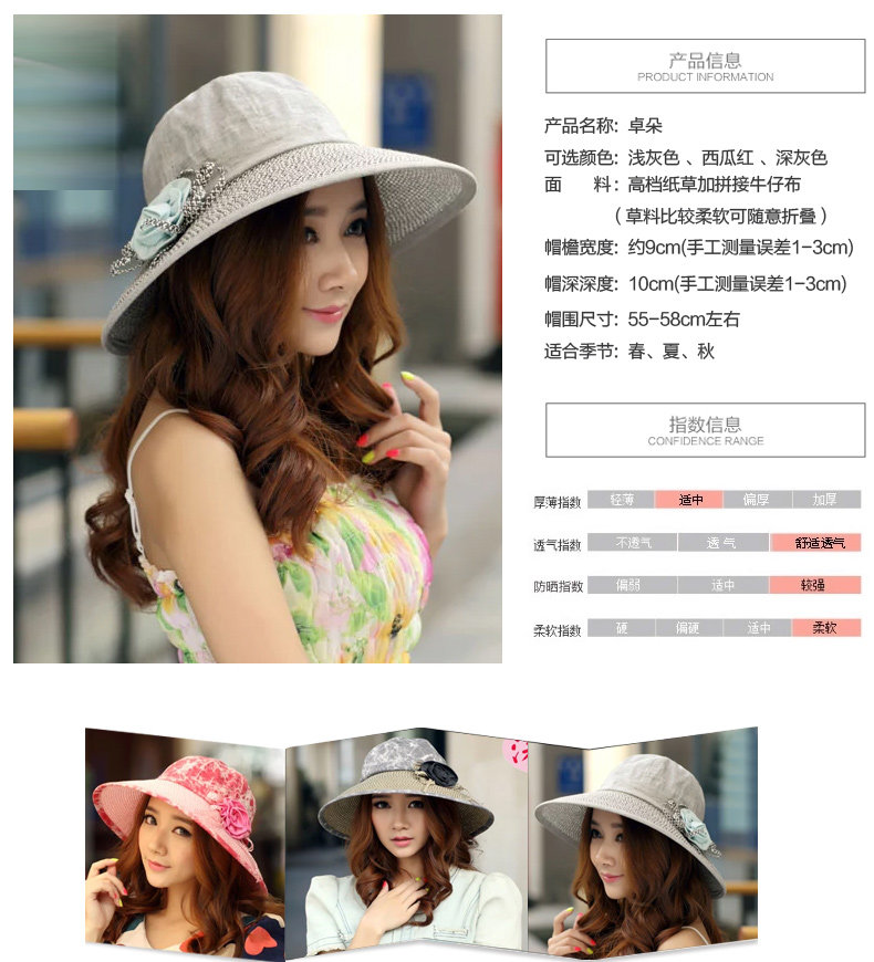 卓朵帽子 女 夏天 韩版遮阳帽 太阳帽 沙滩帽 大沿帽防晒帽 草帽