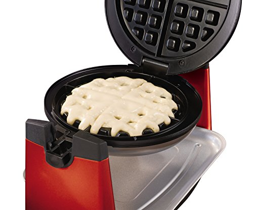 -. Feature : Adjustable temperature control to make light and fluffy or crispy waffles / Nonstick coating to easily remove cooked waffles / Power and ready indicator lights / Drip tray removes for easy cleaning / 180-degree rotary system for even baking and browning of waffles
