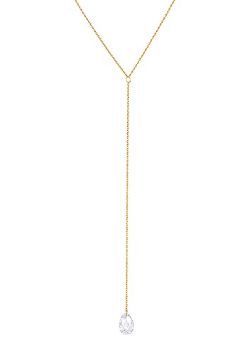 -. Title : Y Necklace with CZ Droplet Long Lariat Style and Matching Dangle Earrings - 14K Gold or Rhodium over 925 Sterling Silver
