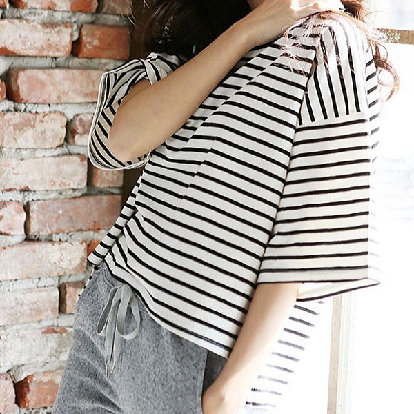 | 商品説明 | ゆったり 5分袖 マリンボーダー Tシャツ カットソー♪ シンプルな定番のマストアイテムボーダーTシャツです。 ゆったりシルエットでこなれたゆるカジスタイルに♪ |
