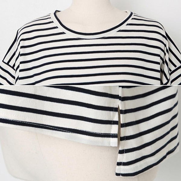 | 商品名 | ゆったり 5分袖 マリンボーダー Tシャツ カットソー |