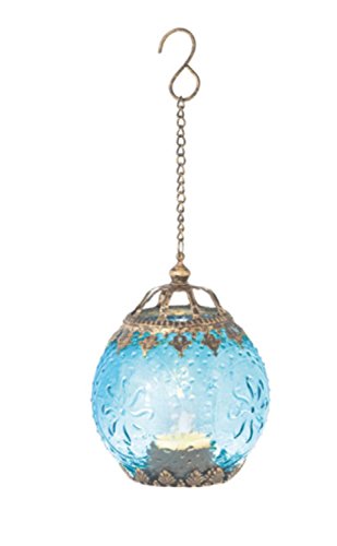 -. Title : 6.25" Aqua Blue Chic Bohemian Glass Tea Light Candle Holder Lantern