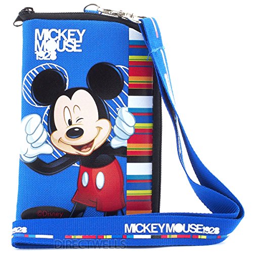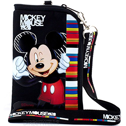 This is official licensed Disney Mickey Mouse lanyard with coin purse/cell phone case. The size of coin purse approximately 5.75" x 4.0" and the length of lanyard to safety clasp approximately 18.0". BLUE OR BLACK RANDOMLY.Feature