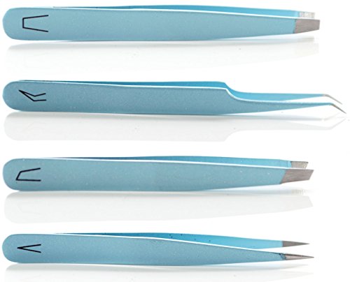 A GREAT SET OF 4 TWEEZERS THAT COMES IN A SLIM CASE: This professional tweezer epilation set contains 4 unique pluckers that will meet all your demands. The slanted tweezer, the flat tweezer, the pro-curved angled ingrown hair removal tweezer, and the needle nose pointed tweezers can help you remove fine, short and ingrown hairs. All 4 tweezers will come in a beautiful, practical case.