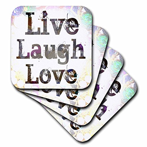 3dRose cst_33715_2 Jewels and Treasures Live, Laugh, Love inspirational Quotes Soft Coasters, Set of 8