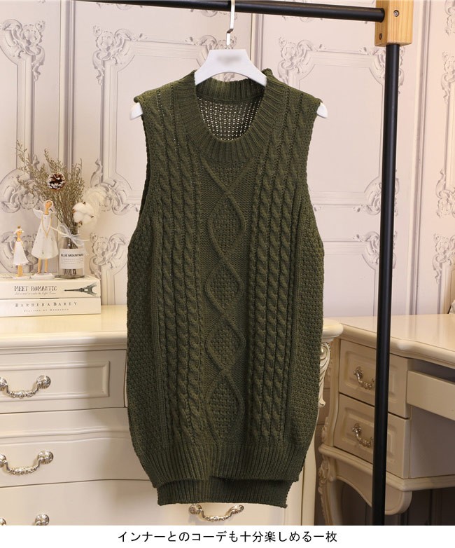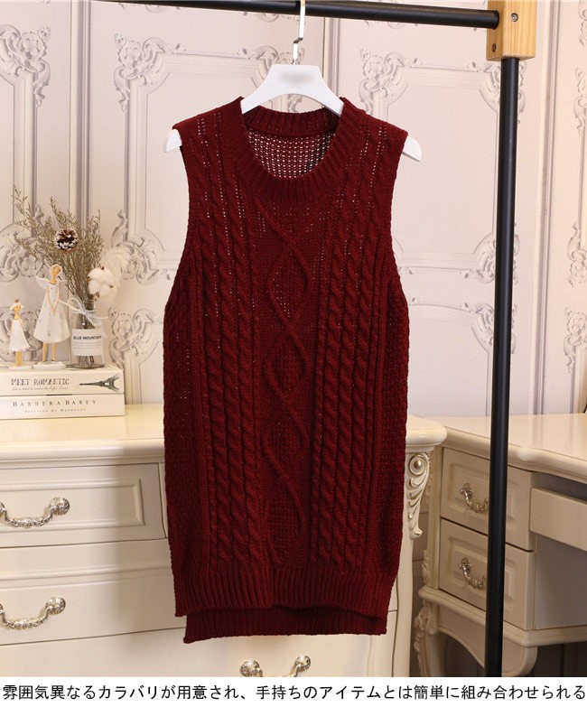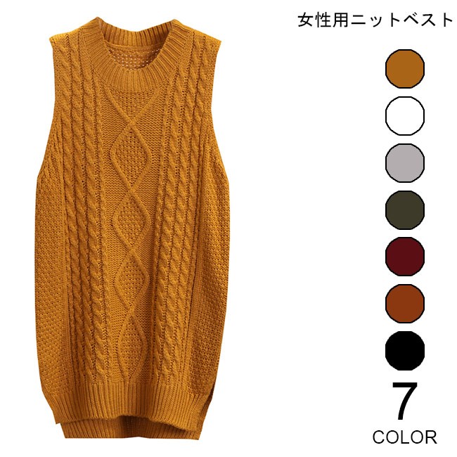 ニットベスト レディース プルオーバー 丸襟 ベスト ヒップ丈 女性用 ニット トップス ノースリーブ ジレ 春秋物 着まわしレディース用のニットベストが登場ヒップ丈仕様にクラシックな編み模様でとても気質アップ裾部分はスリット入り、下半身に締め付け感をしないインナーとのコーデも十分楽しめる一枚雰囲気異なるカラバリが用意され、手持ちのアイテムとは簡単に組み合わせられるカラー:1 2 3 4 5 6 7素材 ポリエステルサイズ(cm) FF 着丈78 バスト96ご注意:※サイズは平置きサイズです。素人採寸ですので、若干の誤差がございます、ご了承ください。