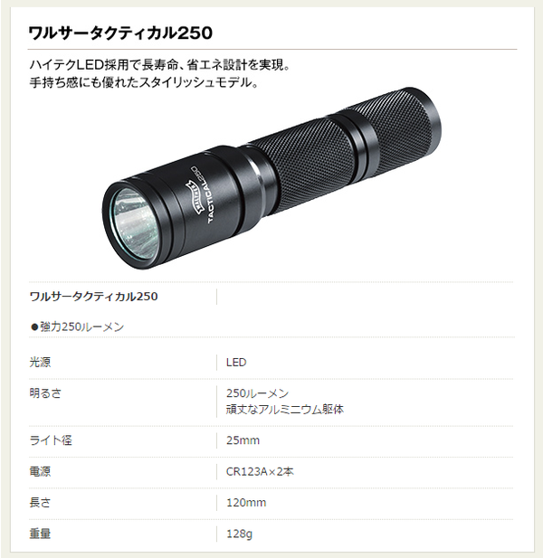 LEDフラッシュライト(懐中電灯) アルミニウムボディ スリムタイプ/高輝度照射/長寿命 ワルサー RLS250