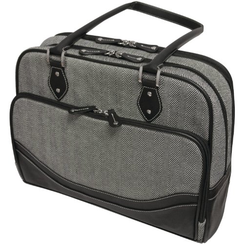 Our new Herringbone tote is one of the best products we have ever produced. The classic styling and rich herringbone fabric give this case an attractive, sophisticated look and feel. Available in two sizes, the case features a padded laptop pocket, a soft fur-lined iPad/tablet pocket, two storage sections, a separate accordion file section plus a zip-down workstation for your travel accessories. The Herringbone Tote is highlighted by black trim with contrast stitching and polished nickel fittings. Our signature shoulder straps are flattened where they rest on your shoulder which makes a loaded bag much more comfortable to carry. The full-length rear pocket and a trolley strap provide ease of use when traveling. A matching clutch is ideal for miscellaneous accessories or cosmetics. When you combine the great styling, laptop and tablet protection, storage and organization features and user comfort, the Classic Herringbone Tote may be the perfect case for today's woman on the go!Feature