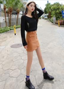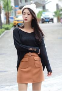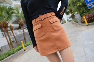 おおきめなポケットが両サイドについた新作の可愛いウールスカート♪