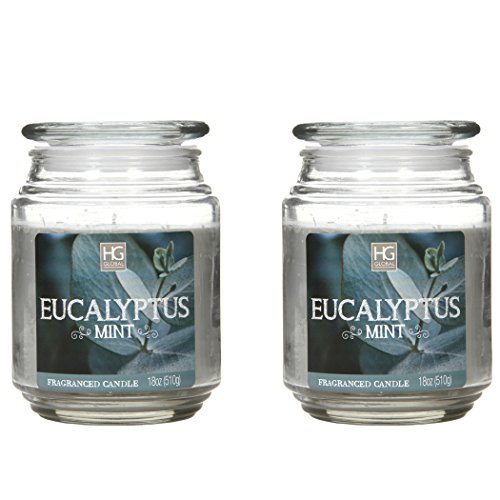 Aromatherapy Hosley Set of 2 Eucalyptus Mint, Highly Scented, 18 Oz EACH, 18 Oz EACH, Jar Candle. Ideal votive GIFT for party favor, weddings, Spa, Reiki, Meditation, Bathroom settings O9