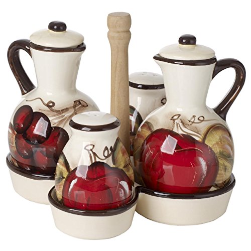 -. Brand : 5th Ave Store -. ProductGroup : Kitchen -. ProductTypeName : KITCHEN -. Size : 6 x 6 x 5 Inches -. Title : Ceramic Cruet Set Oil and Vinegar Bottles with Salt and Pepper Shakers and Stand Cucina Italiana