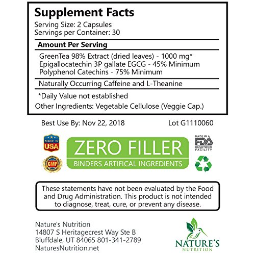 Nature's Nutrition Green Tea Extract is a non-GMO, all-natural weight loss formula containing ZERO fillers, ZERO binders, and ZERO artificial ingredients. Our dietary supplement is made with vegetarian- and vegan-friendly ingredients, and is free from allergens including wheat, egg, milk, peanut, shellfish, and soy.