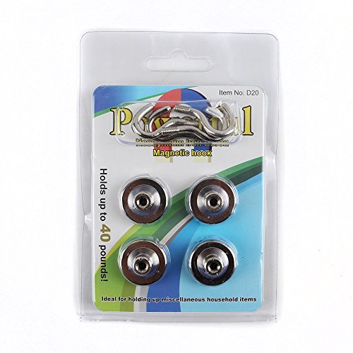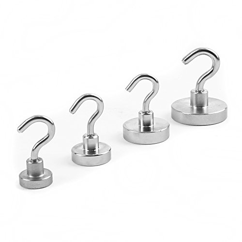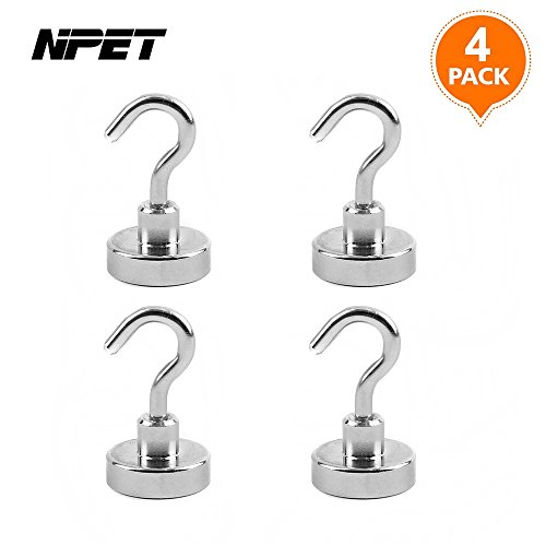 NPET Magnetic Hooks Super strong,20mm 33Lb 15KG 4 Pack, Heavy Duty Industrial Grade Multi-Purpose Hooks