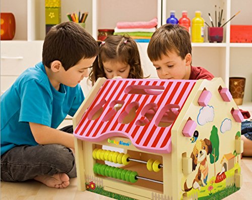 Feature : Babylian Three-dimensional Square House Advantage: Bigger and better of 2016 newest version with orbit collection,abacus,block matching and color recognized function. / Made of high quality,thicker wood of card button design makes it more sturdy and longer for playing. / With non-toxic painting,and all the pieces are more than 4cm dimension not be choking hazards. / Moderate and refreshing color,each colorful shape has numbers and letters in small animal orbit. / A nice shape-sorter and educational toy to develop baby's cognitive ability,eye and hand coordination ability and fingers muscle flexibility.