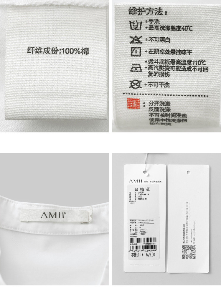 | 洗涤标准: | 不可浸泡悬挂晾干不可干洗110℃以下垫布熨烫不可漂白40℃以下手洗 |