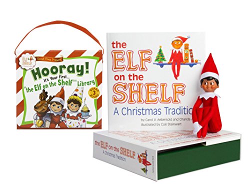 SPECIFICATIONS: Includes (1) Elf on the Shelf A Christmas Tradition Brown Eyed Boy with book and (1) Elf on the Shelf Library with 3 books.