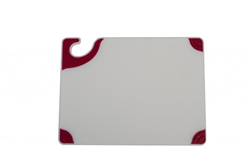 San Jamar CBGW152012RD Saf-T-Grip Cutting Board, Red Grips, White