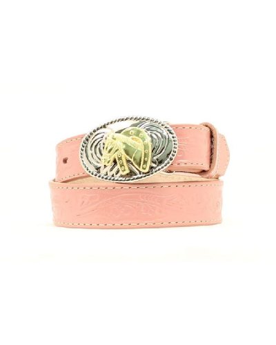 Studio : MF Publisher : MF Binding : Apparel Product Description Your little cowgirl will be pretty with this great belt by Nocona Belt Co. The leather strap is tooled for a great western look. It also comes with an interchangeable buckle that features a horse head in a horseshoe. Width 1 1/4'. Material: Leather. 0