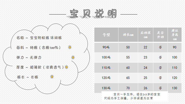 我还是喜欢让小孩子穿的柔软一点,所以我们这款防蚊裤的面料是棉的,