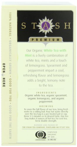 Stash Tea Organic White Tea with Mint, 18 Count Tea Bags in Foil (Pack of 6)