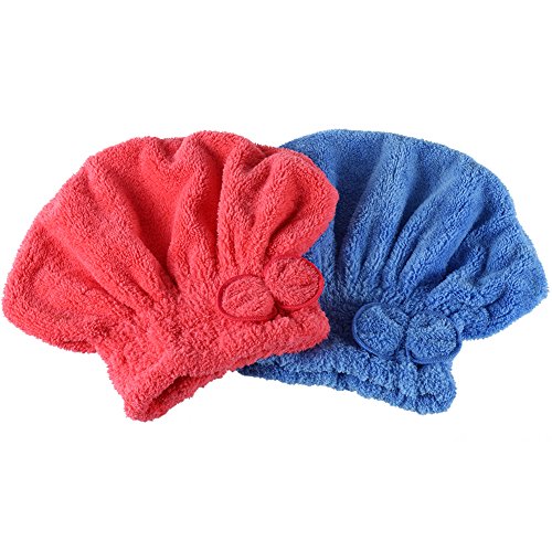 Feature Material: polyester Size: diameter 15.5cm/6.1"; head circumference 28cm/11"; length 24cm/9.4" Weight: 4.2oz/120g Application: for hair fast drying Color: blue red Package list: 2x hair drying towels