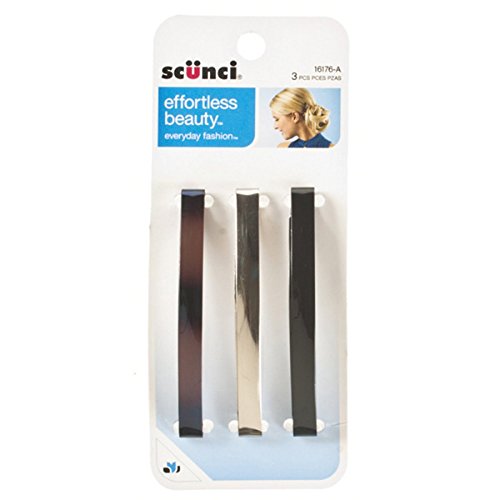 Scunci Barrettes are a stylish way to tie your hair and keep them back. These barrettes add to your style. They are comfortable to wear all day long as they don't pull the hair and tangle them. Perfect for taming stray strands, these barrettes come in a 6 pack with 1 wide and 1 skinny tortoise, 1 wide and 1 skinny black and 1 wide and 1 skinny silver metal shade barrettes. - Can be worn all day long