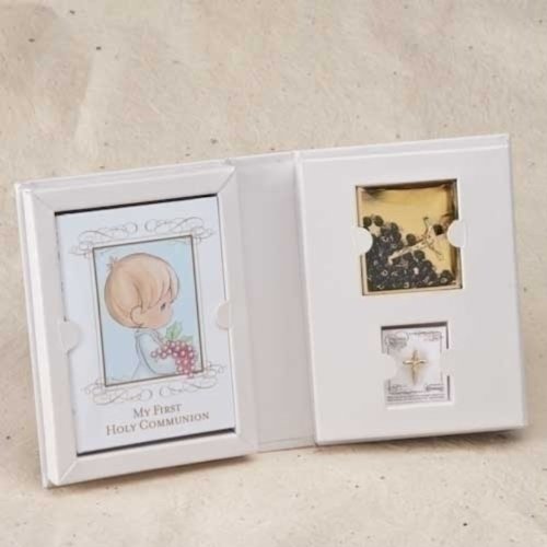 -. Binding : Baby Product -. Brand : Roman -. Color : White -. Department : boys -. EAN : 0089945472998 -. Feature : A wonderful and meaningful keepsake for that special day / For a boy on his first communion / Overall dimensions: 6.25"H by 4.75"W by 1.375"D / See our wide selection of communion, baptism and christening items -. Label : Roman -. Manufacturer : Roman -. Model : 62968 -. MPN : 62968 -. PackageQuantity : 1 -. PartNumber : 62968 -. ProductGroup : Baby Product -. ProductTypeName : BABY_PRODUCT -. Publisher : Roman -. Studio : Roman -. Title : Precious Moments Boy's First Holy Communion Gift Set - Rosary -. UPC : 089945472998