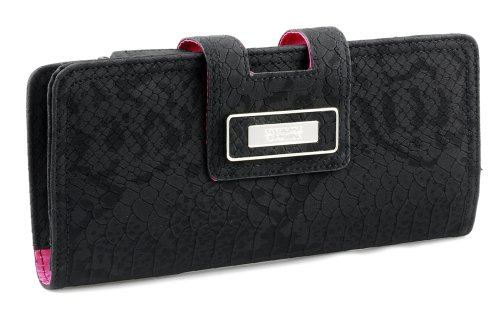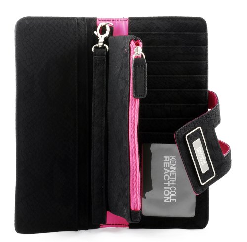 Kenneth Cole Reaction Black Snake Faux Suede Tab Clutch Wristlet Wallet