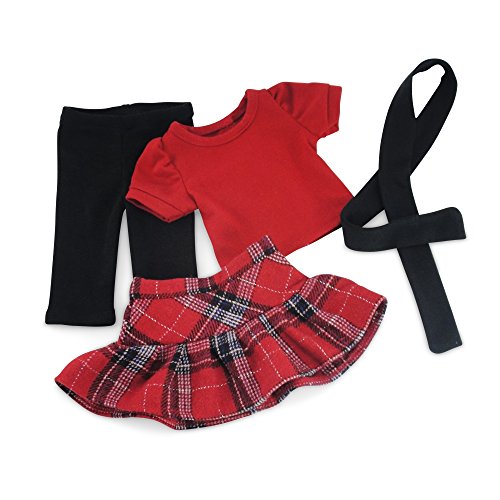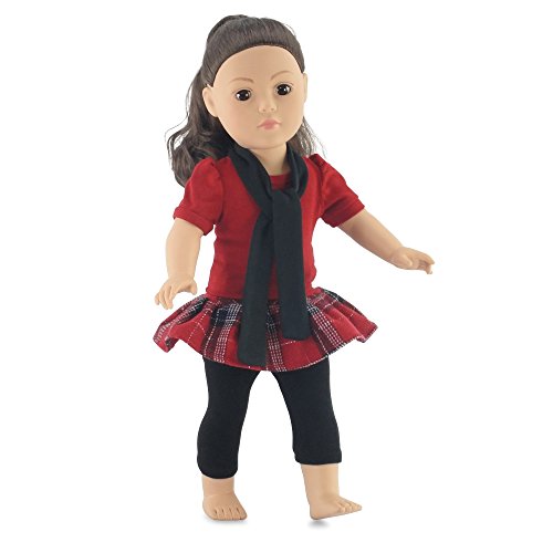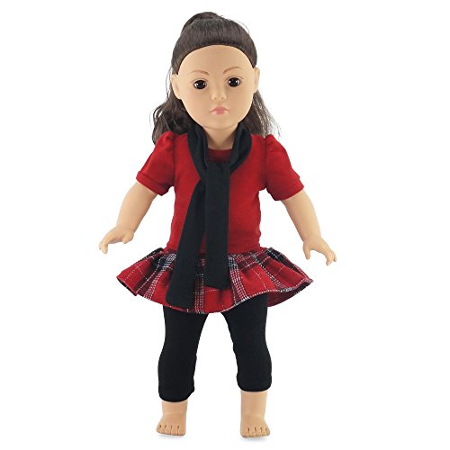 -. Feature : Made to fit 18 Inch dolls such as American Girl, Madame Alexander, Our Generation, etc. / Luxurious high quality fabrics, hand washable, safety tested / Trendy red tartan skirt with serious flair, a red puffed bell sleeved t-shirt / Calf length black cotton leggings and matching black cotton scarf to complete the look / Designed and manufactured by Emily RoseTM Top quality doll manufacturer. We are not affiliated with American Girl®, Reg. Trademark of American Girl, LLC
