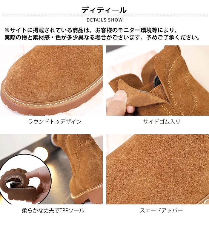 | 商品名 | スエードブーツ ショートブーツ 秋冬ブーツ ラウンドトゥブーティ レディース サイドゴア ローヒール TPRソール ブーティー 太ヒール 美脚ブーツ 歩きやすい 2017秋新作 |