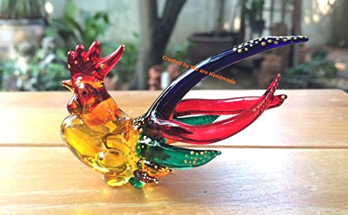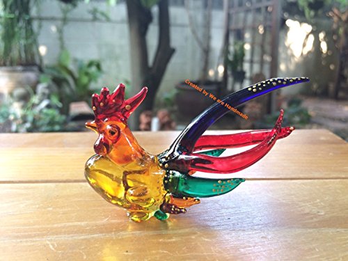 Measures L 2.5 inches X W 1 inches. X H 2.5 inches. Since it is handmade work so it may has a little different detail from picture. Matching glass rooster figurine available, please search on Amazon : "B00E0F6B3G" The matching collection of glass rooster.