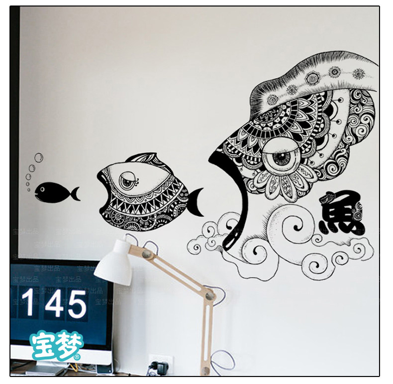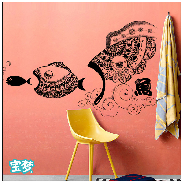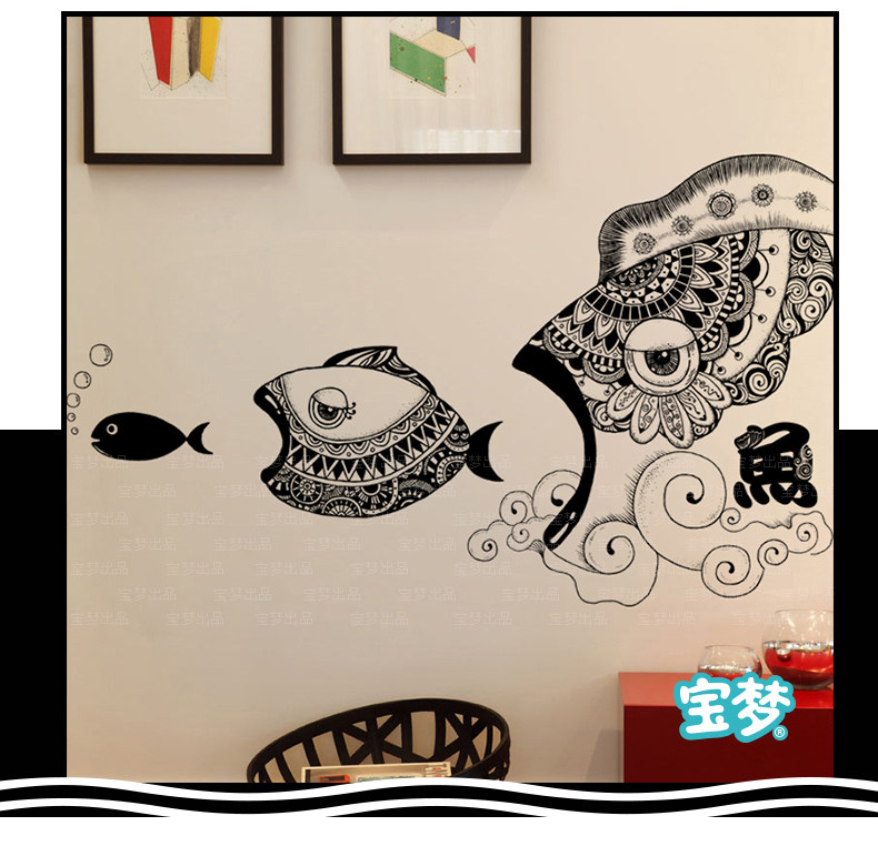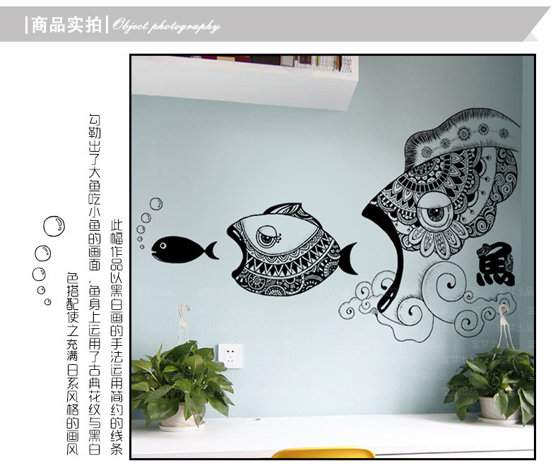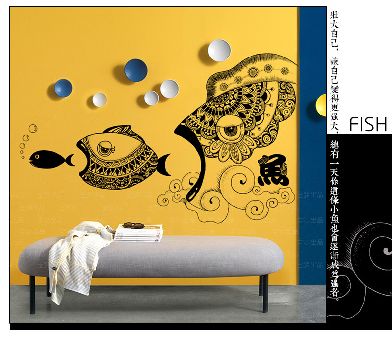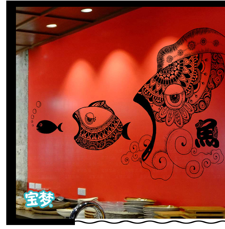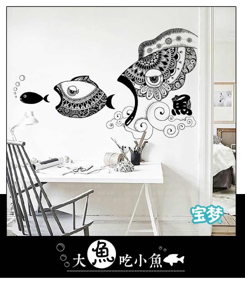 日系文艺大鱼吃小鱼墙贴纸创意日式寿司料理店铺装饰品墙壁纸贴画