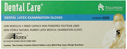 Tillotson Dental Care Latex Exam Gloves, Small, 100 Count